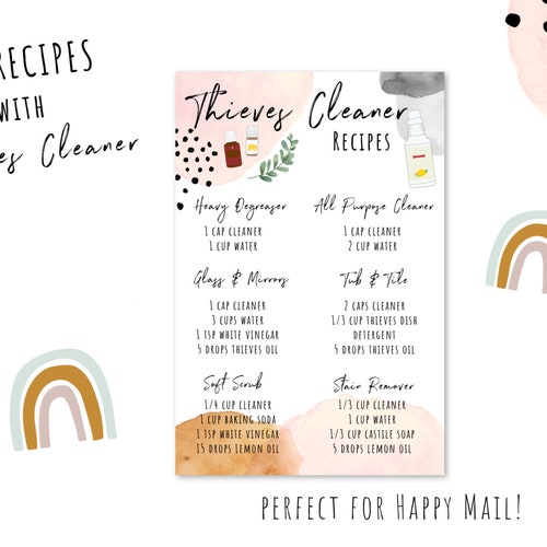 Thieves Cleaner Recipe Card Diy Essential Oil Recipes Etsy