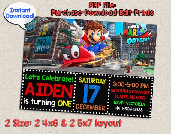 Supermario Odyssey Birthday Super Mario Odyssey Invitation Etsy